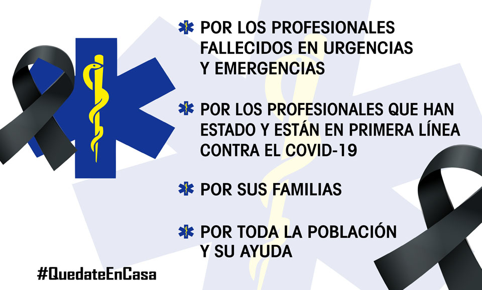 El acto consistirá, si el trabajo en ese momento nos lo permite, en acudir a la puerta de los Servicios de Urgencias Hospitalarios y Extrahospitalarios de Aragón para guardar un minuto de silencio, seguido durante unos segundos de la activación de las sirenas de las ambulancias y vehículos de Urgencias y Emergencias presentes. Portaremos un lazo negro, visible encima de nuestros uniformes de trabajo, en este acto y, si os parece adecuado, a partir de ese momento hasta que acabe esta situación de pandemia.