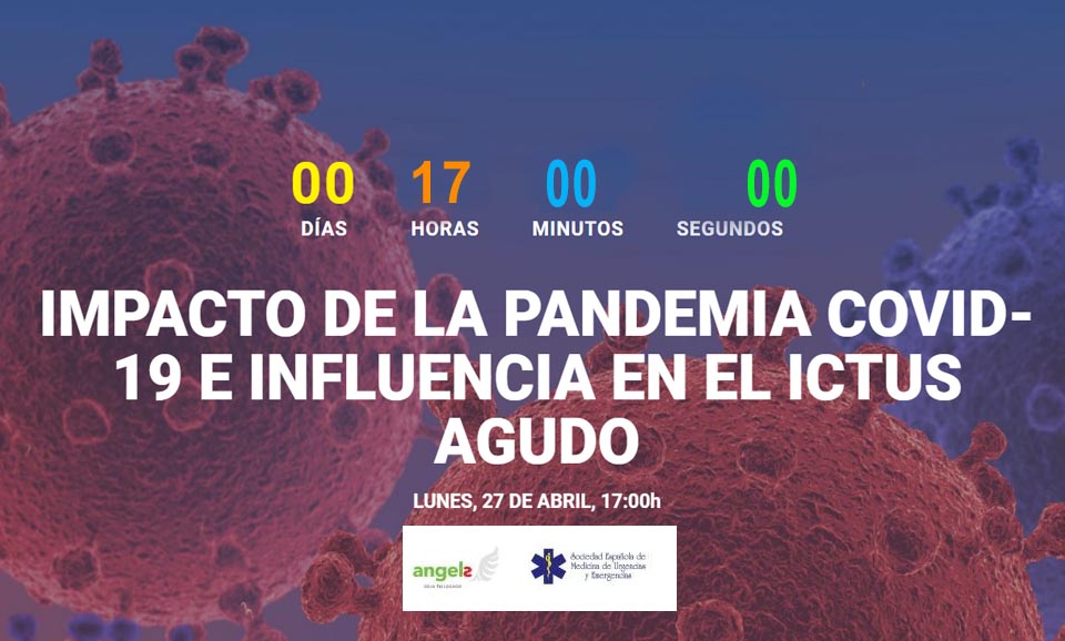 Hoy lunes 27 de abril a las 17h. tendrá lugar un webinar virtual donde se discutirá la situación de la pandemia COVID-19 y su incluencia en el ictus agudo, una iniciativa impulsada desde el equipo Angels y SEMES,