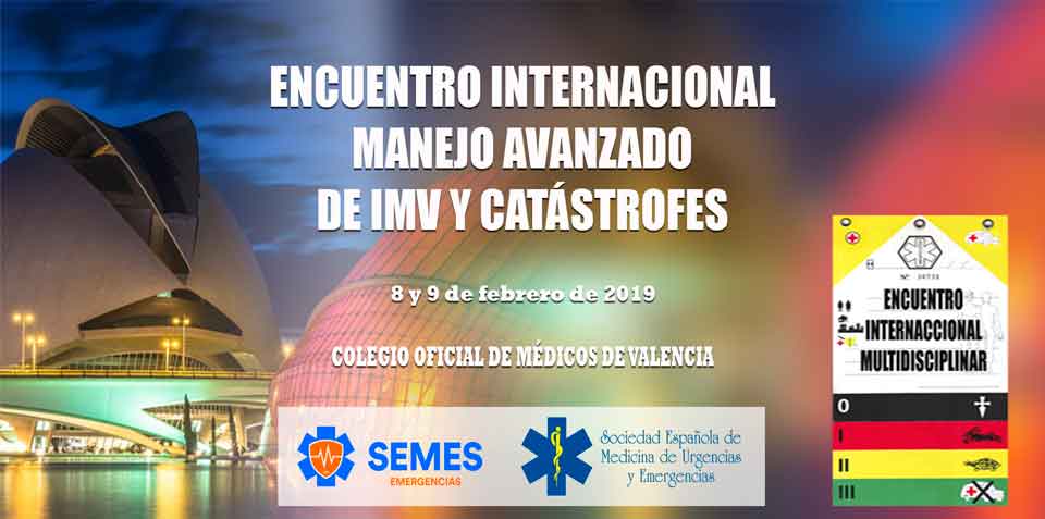 La Secretaría de Emergencias de SEMES (Sociedad Española de Medicina de Urgencias y Emergencias) organiza el ENCUENTRO INTERNACIONAL DE MANEJO AVANZADO DE IMV Y CATÁSTROFES que tendrá lugar los días 8 y 9 de febrero de 2019 en Valencia.